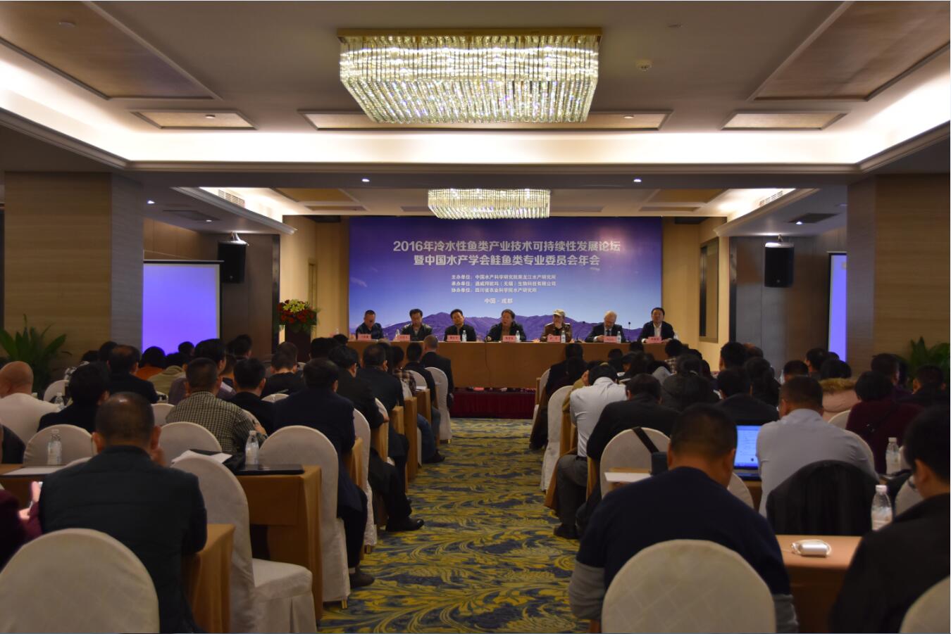 11月30日,由8932彩集团主办,通威拜欧玛(无锡)生物科技有限公司承办、四川省农业科学院水产研究所协办的“冷水性鱼类产业技术可持续性发展研讨会”暨中国水产学会鲑鱼类专业委员会2016年年会在成都市召开。中国水产学会副秘书长陈恩友、黑龙江水产研究所副所长石连玉、四川省水产局局长卿足平、及来自全国涉及冷水鱼行业的50多家高校、科研院所和企业代表参加了会议。