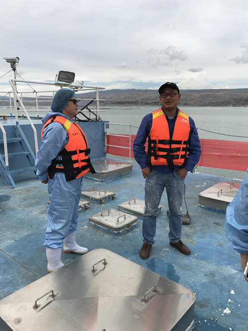 随后前往休闲渔业点调研,此处集虹鳟养殖、垂钓、餐饮于一体的农家乐性质,规模不大,但是经营时间不短,特色鲜明。 随后前往位于刘家峡水库的“永靖虹大三文鱼有限公司”开展调研,此公司以二倍体、三倍体虹鳟为主要养殖对象,利用深水网箱养殖模式,养殖面积5000平方米,年产量180吨,甘肃水产研究所为该公司提供技术服务。