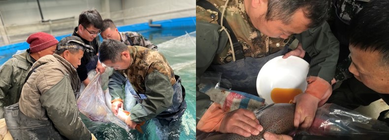 为落实农业农村部和中国水科院2021年渔业援疆工作部署,助力乡村振兴战略实施,近日, 黑龙江水产研究所冷水性鱼类科技援疆专家团赴新疆阿勒泰地区对国家二级保护动物--额尔齐斯流域土著哲罗鲑开展了为期11天的人工繁殖试验,成功采集制备哲罗鲑受精卵1万余粒,标志着额尔齐斯流域土著哲罗鲑首次获得人工繁殖成功。
