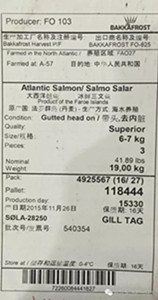 Bakkafrost是法罗群岛最大的三文鱼养殖公司,1968年 Hans和Róland Jacobsen兄弟创立该公司,1979年该公司成为法罗群岛最早养殖三文鱼的公司之一,2006年通过兼并与收购,使其年养殖能力达到18,000吨,2010年在挪威奥斯陆股票交易所上市,现国内主要销售的加工厂号:FO 103,FO 147等。