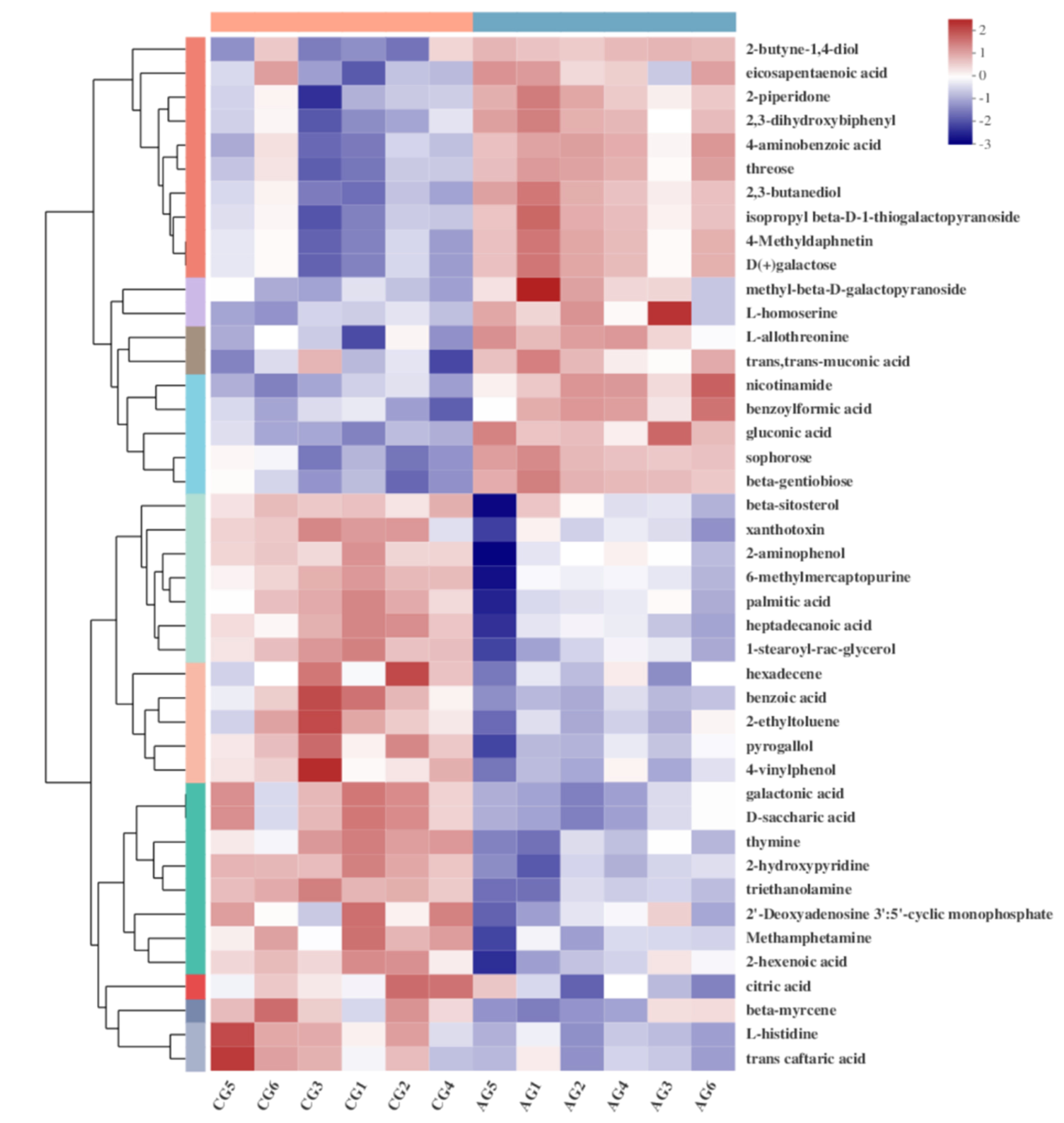 图2干露胁迫下中华绒螯蟹鳃组织差异代谢物变化