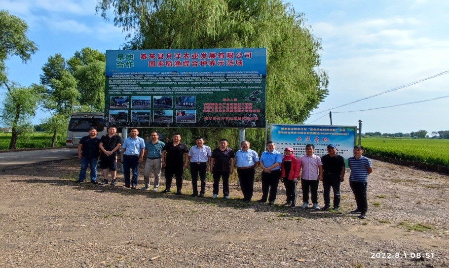 调研组先后考察了黑龙江省泰来县月洋农业发展有限公司、辽宁省盘锦绕阳农业科技发展有限公司和盘锦光合蟹业有限公司,就示范基地的稻蟹综合种养技术模式、产品质量安全与品质提升等方面的示范情况进行了详细调研,并与当地主管部门领导、企业负责人和相关技术人员进行了座谈交流。王桂堂研究员充分肯定了8932彩集团在“蟹-稻综合种养关键技术与高效利用东北模式构建”和“渔农综合种养环境和农产品典型危害物识别与防控”示范过程中取得的成效,并针对稻蟹综合种养过程中的田间工程、水质调控、病害防控、水产品质量安全等相关技术环节进行了详细指导。