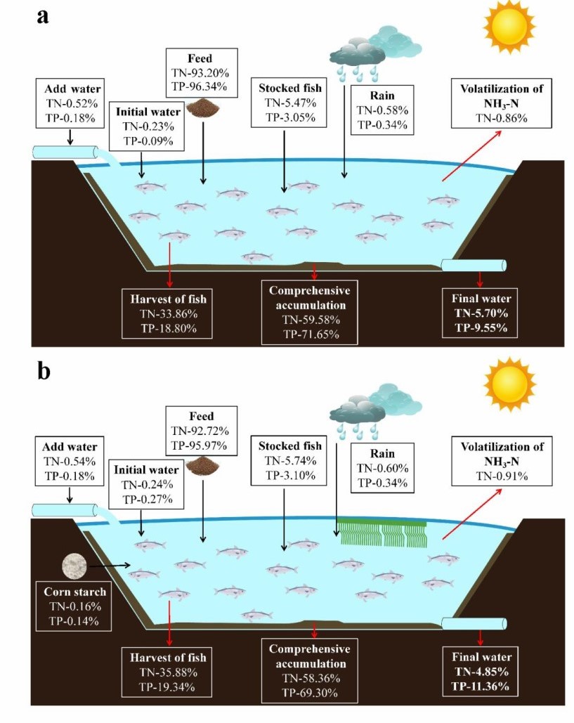 池塘养殖是我国水产养殖的主要生产模式,当前淡水池塘养殖存在水体富营养化、养殖尾水污染物严重超标等问题。本研究通过精确计算养殖池塘主要生源要素氮、磷收支,揭示了北方典型养殖池塘富营养物质的归趋特征与转化规律,并通过对比水质和鱼体生长参数,阐释了生态基联合碳源添加能够有效原位调控池塘水质、增强鱼体生产性能。