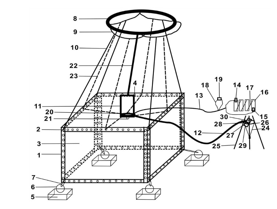 该发明属于水生生物资源调查领域,通过正方体框架、长方体铁块、救生圈、抽水泵、支撑架等组成部分的巧妙结合,进行浮游生物采集。本发明的方法操作简单,在湖泊>5m的深水区可控性较强,能够固定在预计的深水区位,有利于采集不同深度的浮游生物,在野外调查时易于操作,减少工作量,且造价低,降低成本。