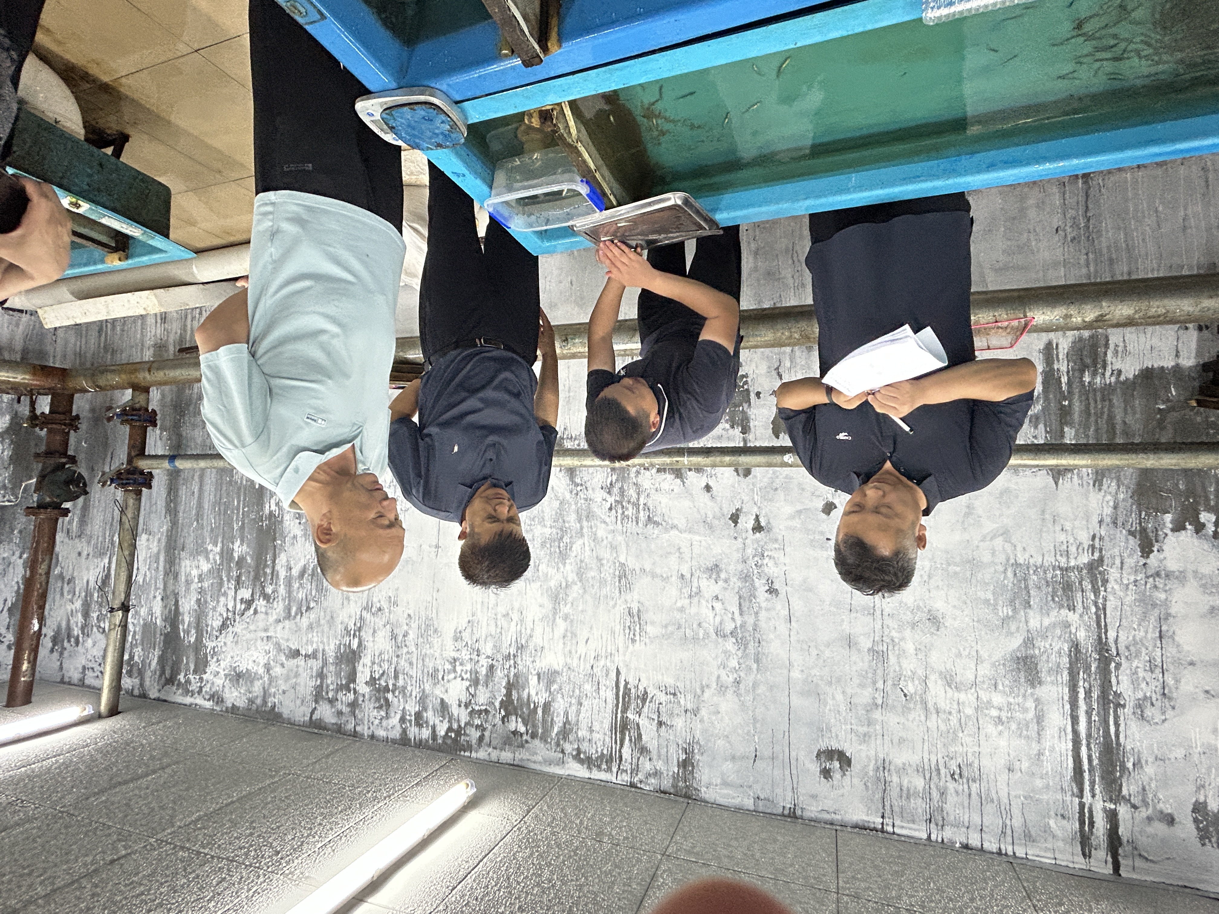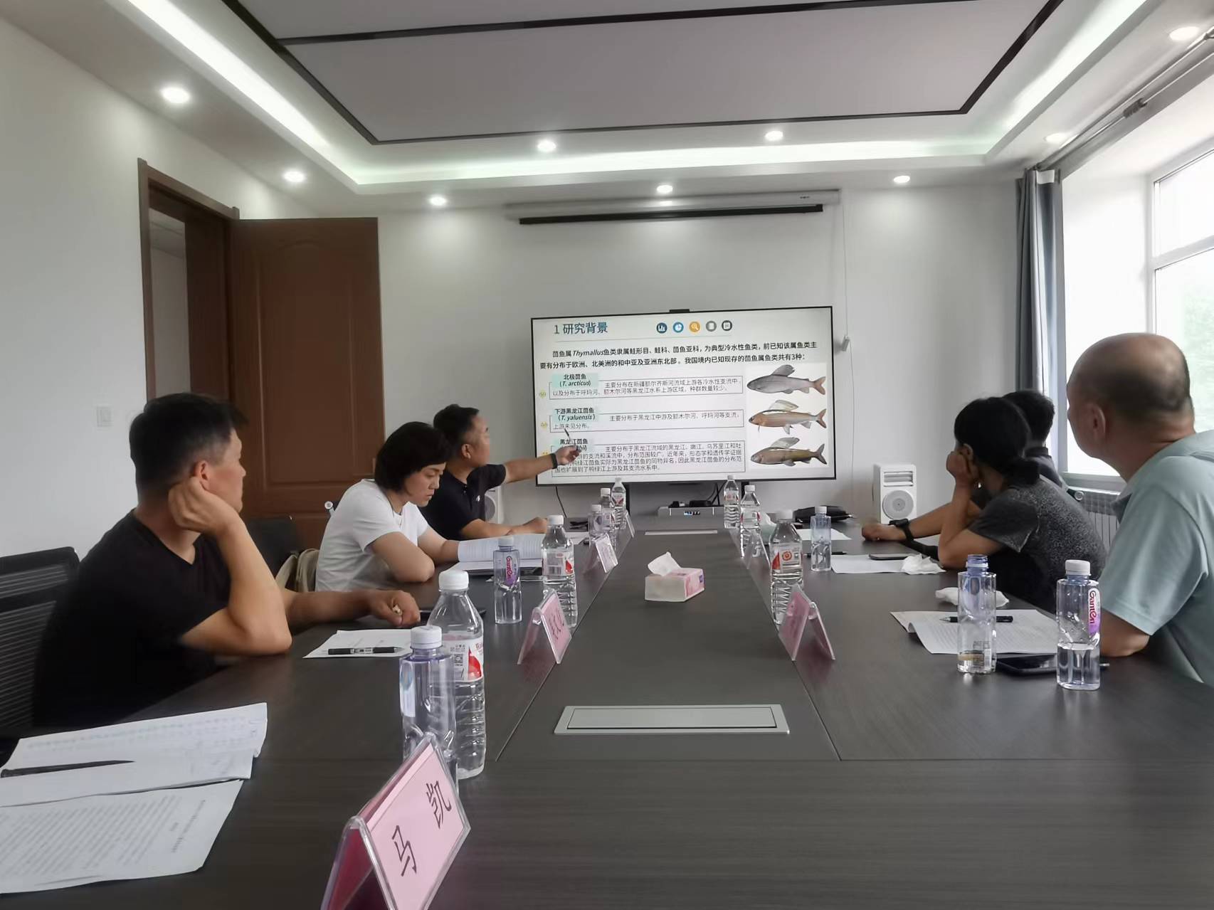 专家组现场考察了渤海冷水性鱼实验站茴鱼亲鱼和幼鱼的养殖情况,对3月龄苗种进行了现场取样测量,听取了项目完成人张永泉的详细汇报。黑龙江茴鱼3月龄苗种平均全长54.4mm,平均体重0.97g,共计8万尾;下游黑龙江茴鱼3月龄苗种平均全长55.6mm,平均体重1.16g,共计1.3万尾。苗种体质健壮,活动能力强,摄食配合饲料旺盛。构建了黑龙江茴鱼和下游黑龙江茴鱼人工繁育基础种群,保存野生黑龙江茴鱼亲鱼300余尾、1+和2+龄黑龙江茴鱼后备亲鱼1000余尾、野生下游黑龙江茴鱼亲鱼150尾。