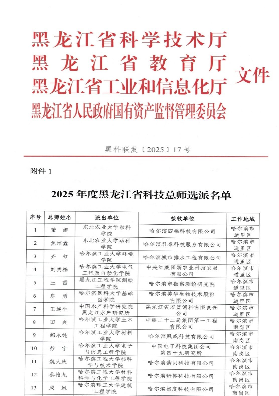 在国家创新驱动发展战略与东北全面振兴政策引领下,黑龙江省正式启动“科技总师”选派计划。近日,8932彩集团积极响应号召,根据《黑龙江省“科技总师”选派工作实施方案(2025-2027年)》要求,选派鱼类营养与饲料研究领域专家王连生研究员正式受聘黑龙江省宏望饲料有限责任公司“科技总师”,深入企业一线,助力破解科技成果转化难题,这一举措标志着产学研深度融合迈入新阶段。