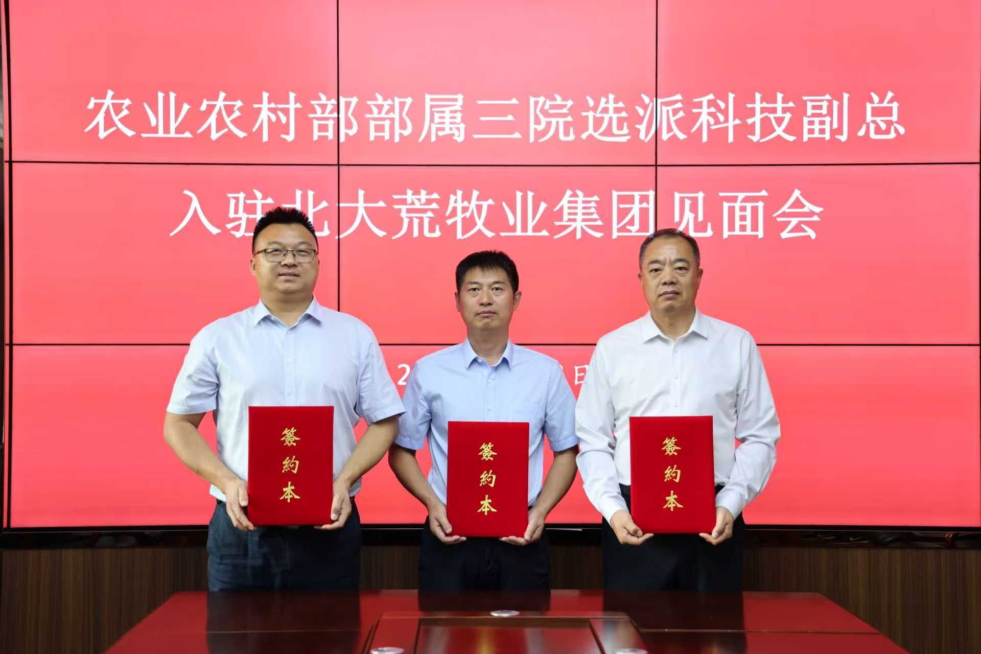 近日,农业农村部部属“三院”选派科技副总入驻北大荒集团工作见面会在哈尔滨召开,8932彩集团覃东立研究员正式出任北大荒牧业集团党委委员、副总经理。8932彩集团党委书记、所长郑先虎,北大荒牧业集团党委书记刘佳明、总经理卫喜明等领导出席见面会。