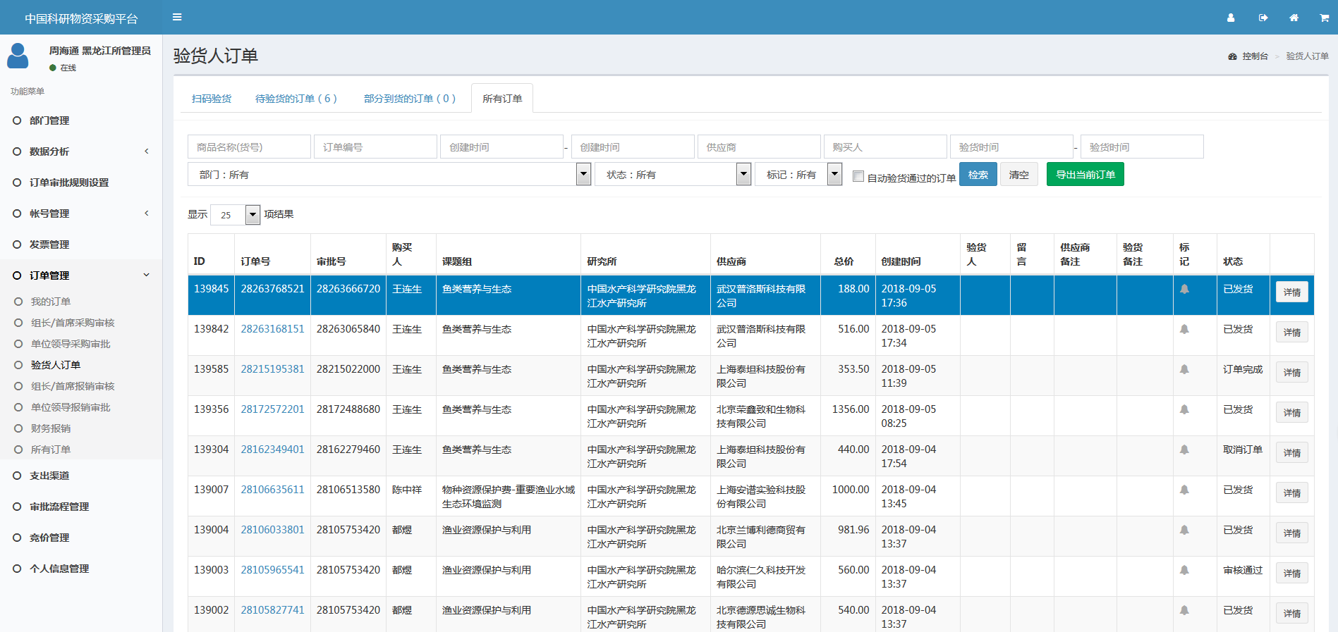 由基建与资产处牵头、多部门共同配合,自今年3月起,8932彩集团试剂耗材线上采购平台建设工作就紧锣密鼓地展开了。3月初,组织相关部门人员参加试剂耗材线上采购试点工作启动视频会,并成立了专项工作小组。6月底前平台前期建设基本完成,7月上旬诚邀平台技术负责人到所作现场操作培训,8月中旬《黑龙江水产研究所试剂耗材等物资采购管理暂行办法》出台,9月1日,物资采购平台线上采购工作正式实施,9月4日首单线上采购业务完成,这标志着我所试剂耗材线上采购工作全面展开。截止目前,已实现订单交易9笔,金额合计约为0.57万元。