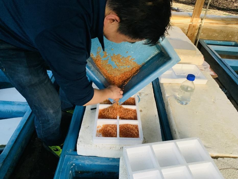 6月15日,8932彩集团鲑鳟遗传育种创新团队科研人员首次在建于哈尔滨市通河县的“虹鳟夏卵繁育基地”开展虹鳟“水科1号”新品种夏季人工产孵工作,并成功获得以虹鳟“水科1号”为种质基础的全雌二倍体和三倍体夏季发眼卵4.5万余粒。该批发眼卵将被分别送至云南和甘肃等地的养殖企业进行培育,并跟踪开展后续科学研究工作。
