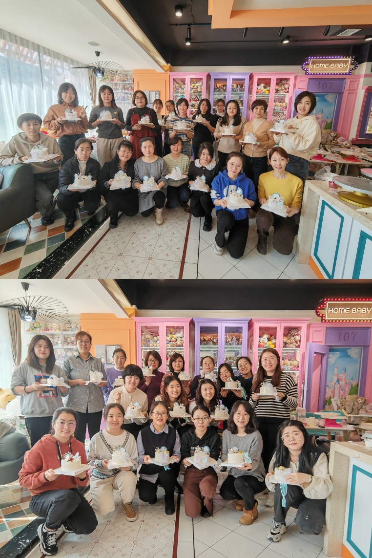 在烘焙老师讲解、示范和指导下,大家按照蛋糕的DIY流程,将自己心灵手巧的天赋发挥到了极致。制作现场,欢声笑语不断。大家互相帮助,互相交流,用现打奶油、新鲜水果、糯米纸蝴蝶、精致的皇冠饰品,配合提前准备好的翻糖所标牌和自己制作的丝带蝴蝶结,制作出一个个精美、典雅的鲜奶蛋糕。