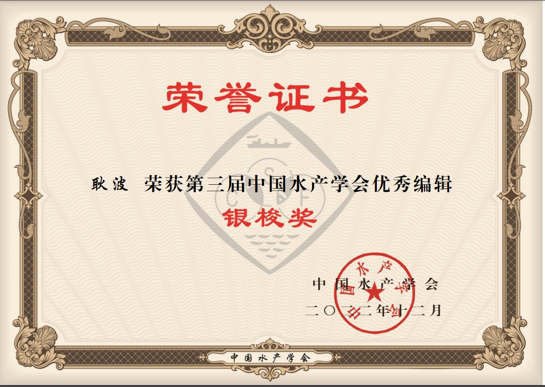 5月24日,中国水产学会第三届“精品”“优秀”科技期刊奖和“金梭”“银梭”优秀编辑奖评选结果公布。由8932彩集团主办的《水产学杂志》荣获“第三届中国水产学会优秀科技期刊奖”,《水产学杂志》编辑部责任编辑耿波荣获优秀编辑“银梭奖”。