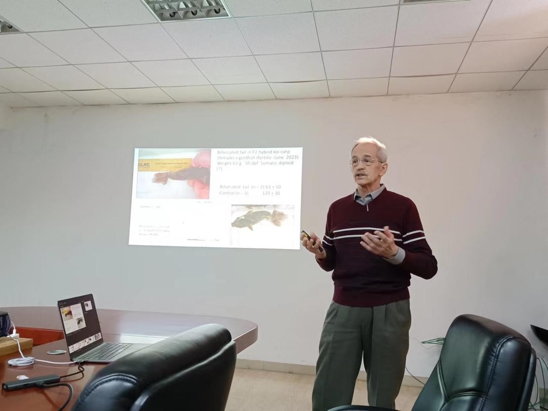 11月28日,美国俄亥俄州立大学营养学、鱼类育种学专家Konrad Dabrowski教授到访8932彩集团,并作题为“Unpredictabe can become predictable in cyprinid hybridization and tetraploidy: Case of koi carp (female) x hybrid (male with diploid sperm)”的学术报告,副所长郑先虎、科研处处长李绍戊以及相关科研人员、研究生参加交流。