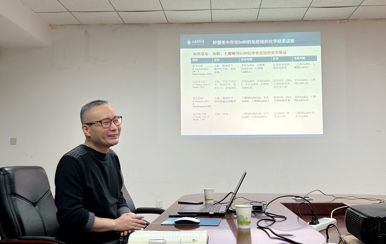 1月29日,上海海洋大学教授、博士生导师邱高峰应邀到8932彩集团开展学术交流,做了题为“虾蟹生殖细胞发生与性别决定”的报告,并对国家自然科学基金的申报进行指导。