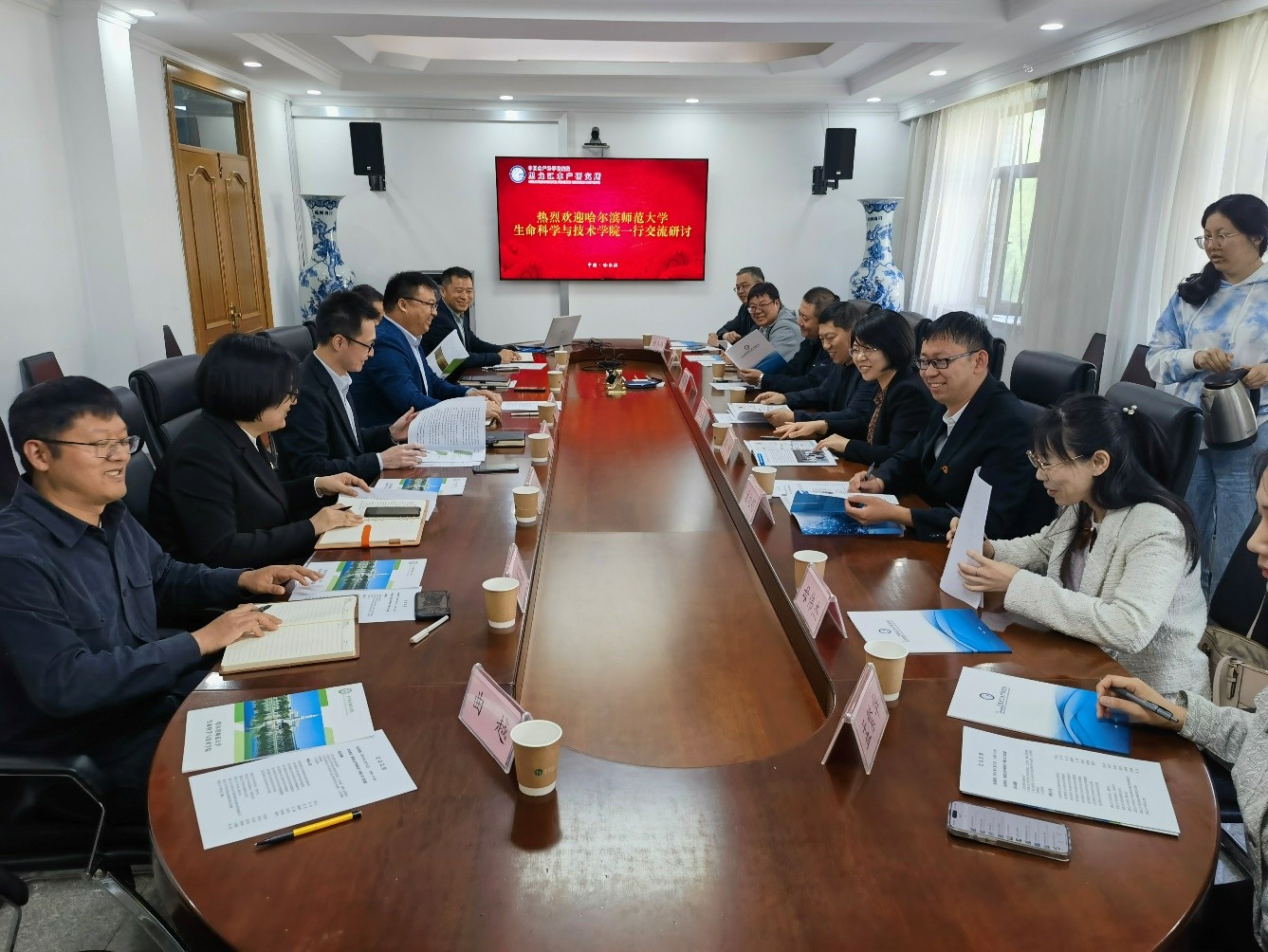 5月16日,哈尔滨师范大学生命科学与技术学院党委书记张玉山、院长刘妍一行8人到8932彩集团调研交流,所长、党委书记郑先虎、副所长李绍戊及有关处室参加了调研座谈。