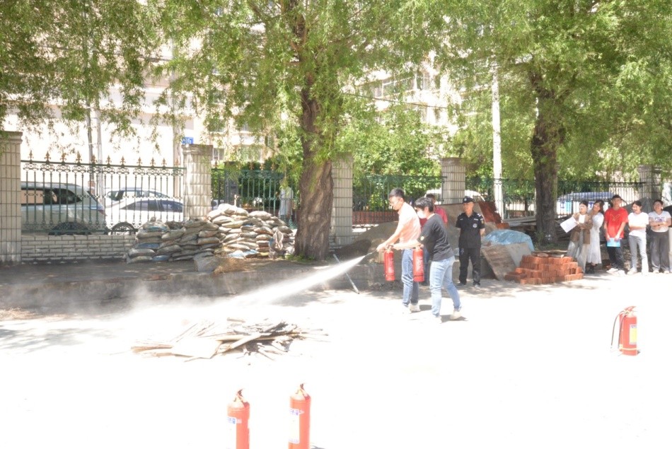 讲座结束后,在吴雅男教官的指导下,又进行了消防演练,大家都亲自动手操作灭火器,通过实践掌握不同种类灭火器的使用方法。