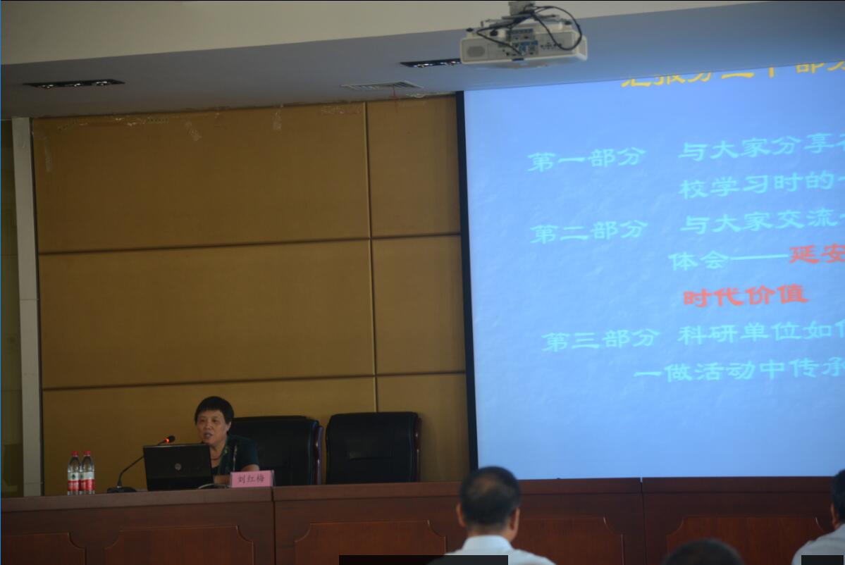 刘红梅院长结合延安学习经历,通过多媒体展示抗战时期的珍贵历史照片,讲述了我党在环境艰苦的陕甘宁地区边战斗边劳动、关注民生、爱戴百姓、发展队伍、赢得民心,最终夺取胜利的历史征程,剖析了我党赢得抗战胜利的宝贵经验和制胜法宝,是坚定正确的政治方向;坚持解放思想、实事求是;坚持全心全意为人民服务;自力更生、艰苦奋斗;领导者以上率下起到表率示范作用。教育共产党员要继承和发扬延安精神,以艰苦奋斗、谦虚谨慎、批评与自我批评的作风,以实事求是的态度,紧密联系群众,保持党的先进性和纯洁性。针对科研院所的建设发展,刘院长号召党员干部要牢固树立创新科技、服务国家、造福人民的思想,树立雄心、奋起直追,继承发扬延安传统、学习“三钱”精神,推动我国渔业科技事业加快发展。