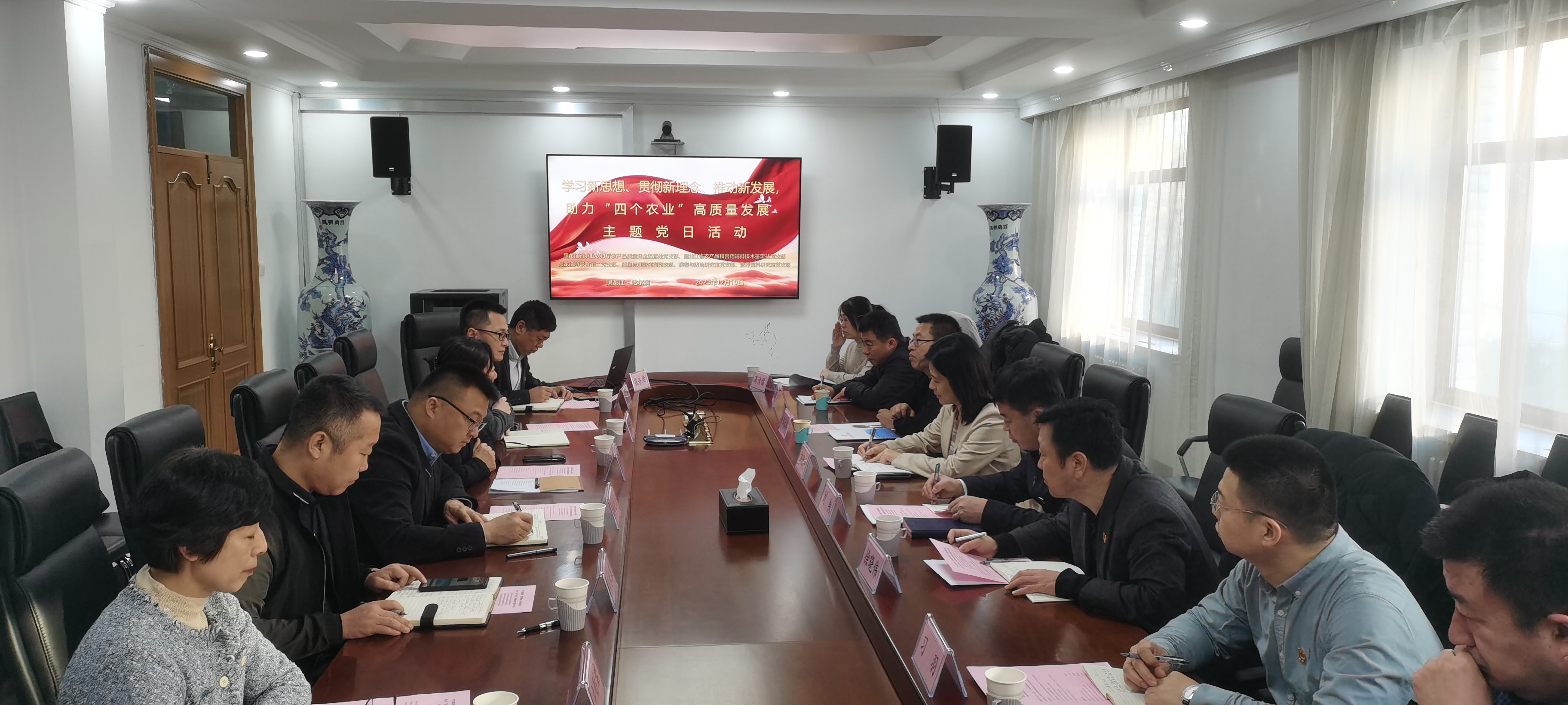 12月19日,省农业农村厅副厅长方晓华率领省农业农村厅农产品质量安全监管处党支部及省农产品和兽药饲料技术鉴定站党支部到访8932彩集团,与我所联合第二党支部、质量标准研究室党支部、病害与防治研究室党支部、营养饲料研究室党支部联合开展“学习新思想、贯彻新理念、推动新发展,助力四个农业高质量发展”主题党日活动,8932彩集团党委书记王玉梅、副所长郑先虎以及各支部党员参加了此次活动。