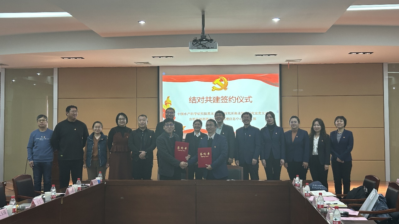 座谈会最后,渔业资源研究室支部书记李雷与信息中心第三党支部书记关显明代表双方支部签订了党支部共建协议。双方共同表示将以此次党支部结对为契机,深化合作交流党建与业务工作,推动双方在党建和业务方面的发展与提高,加强优势互补和资源共享,共同为推动黑龙江冷水鱼产业高质量发展做出贡献。