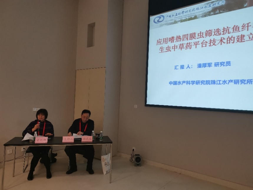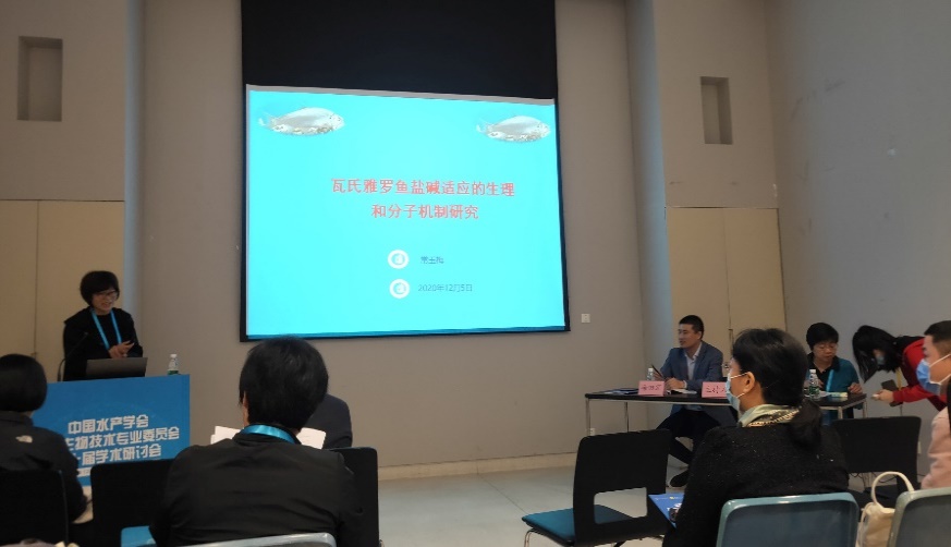 本次会议孙效文研究员担任主会场主持人,梁利群研究员担任分会场主持人。在“水产生物技术创新与良种培育”分会场,常玉梅研究员作题为“瓦氏雅罗鱼盐碱适应的生理和分子机制研究”的学术报告。胡雪松副研究员作题为“Research on germplasm identification and genetic relationships of an endangeredMegalobrama terminalispopulation in the Heilong River within the genusMegalobramabased on genomic information”的学术报告。硕士研究生徐悦同学作题为“丙烯酰胺影响斑马鱼应激反应相关基因的体内外研究”的学术报告。