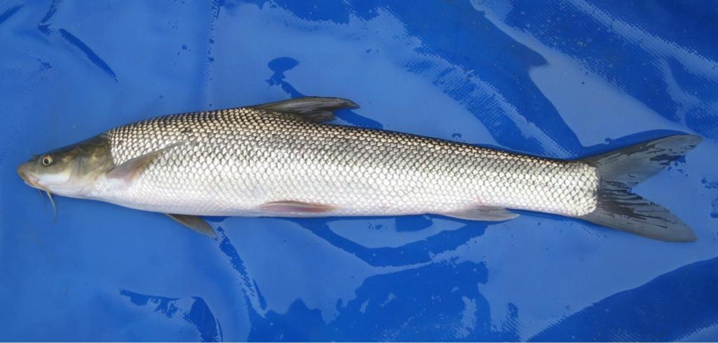 大鳞鲃(Barbus capito) 属鲤科、鲃亚科、鲃属,原产于乌兹别克斯坦的咸海,是当地名贵的大型经济鱼类,一般体重3~4kg。该种有耐盐碱、食性广、肉质鲜美、生长速度快等优良性状,能够在盐度10‰、碱度30mmol/L的水体中生存。2003年在农业部“948”项目支持下首次从乌兹别克斯坦引进了野生的大鳞鲃,该鱼在国外尚没有开展人工繁育研究。通过十几年的科技攻关,成功将大鳞鲃在国内移植和驯养,突破了人工繁殖、苗种孵化、池塘养殖、饵料营养、鱼病防治等关键技术,系统开展了养殖生物学与种质资源研究。同时,建立了全人工苗种繁育和养殖示范基地,在盐碱水域进行了大面积推广,取得了较好的经济、生态和社会效益,成果获得了黑龙江省农业科技进步一等奖。