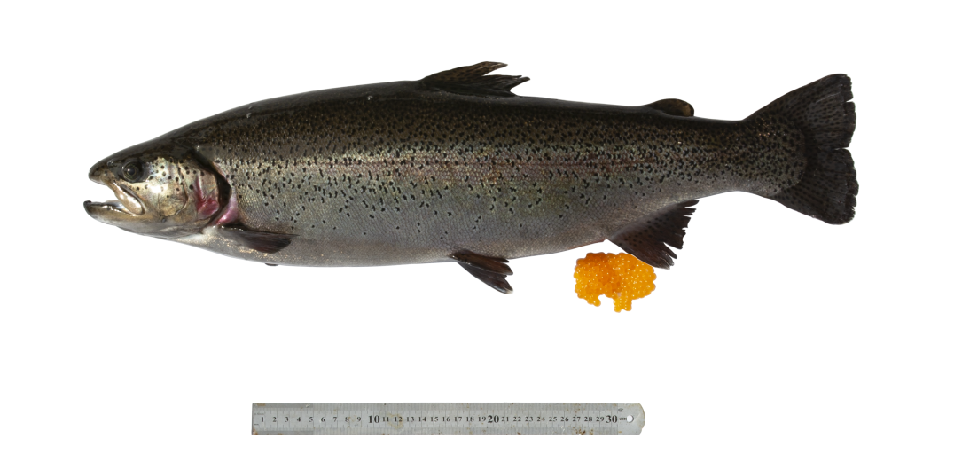 虹鳟“全雌1号” (Oncorhynchus mykiss)以 1959 年和 1983 年从朝鲜和美国引进并以体重为目标性状、经连续 2 代家系选育和 2 代雌核发育获得的虹鳟子代雌鱼(XX)为母本,以性别控制技术诱导雌核发育虹鳟子代获得的生理雄鱼(XX′)为父本,经交配繁殖获得的 F1,即虹鳟“全雌1 号”。 在相同养殖条件下,与未经选育的虹鳟和虹鳟“水科 1 号”相比,22 月龄体重分别提高 19.3% 和 10.2% ,雌性率为 96.7% 。适宜在全国水温 7 ~ 20℃ 和溶氧 6mg/ L 以上的人工可控的淡水水体中养殖。
